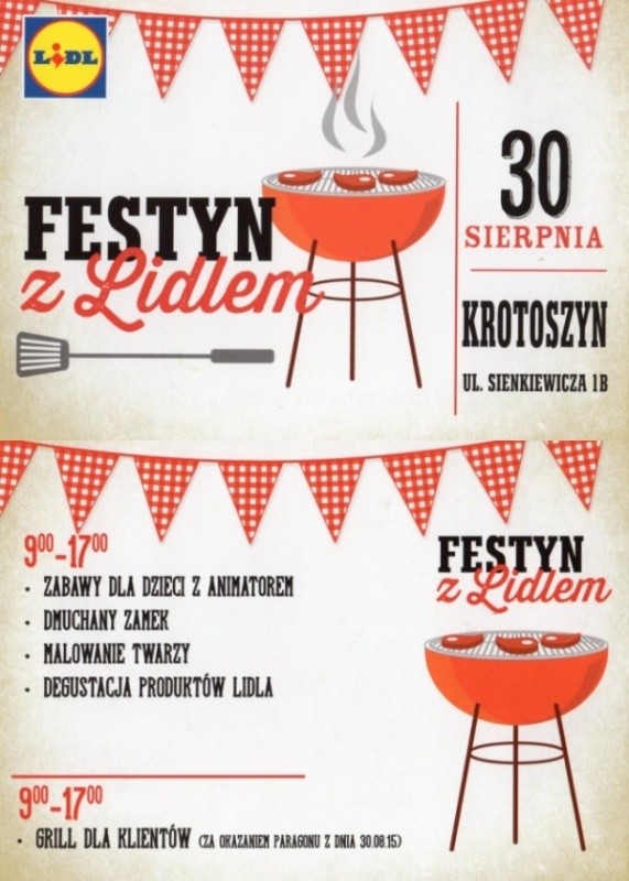 W niedzielę 30.08.2015 roku w Krotoszynie przy ulicy Sienkiewicza 18 odbędzie się festyn z Lidlem.