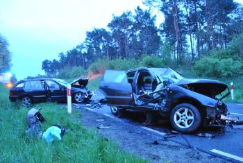 W czasie długiego weekendu majowego, na terenie powiatu słubickiego doszło do śmiertelnego wypadku drogowego. Zdarzenie miało miejsce2 maja ok. godz.19:00, na drodze K-29 pomiędzy Uradem a Cybinką. Ze wstępnych ustaleń wynika, że 29-letni kierujący samochodem osobowym marki Audi A4 na prostym odcinku drogi, wykonując manewr wyprzedzania zderzył się z jadącym z przeciwka samochodem marki Mercedes, którym podróżowały 3 osoby. W wyniku zdarzenia kierujący audi poniósł śmierć na miejscu. 37-letni kierowca mercedesa oraz pasażerowie z licznymi obrażeniami trafili do szpitala. Fragment drogi nr 29 przez kilka godzin był wyłączony z ruchu. (jkd)