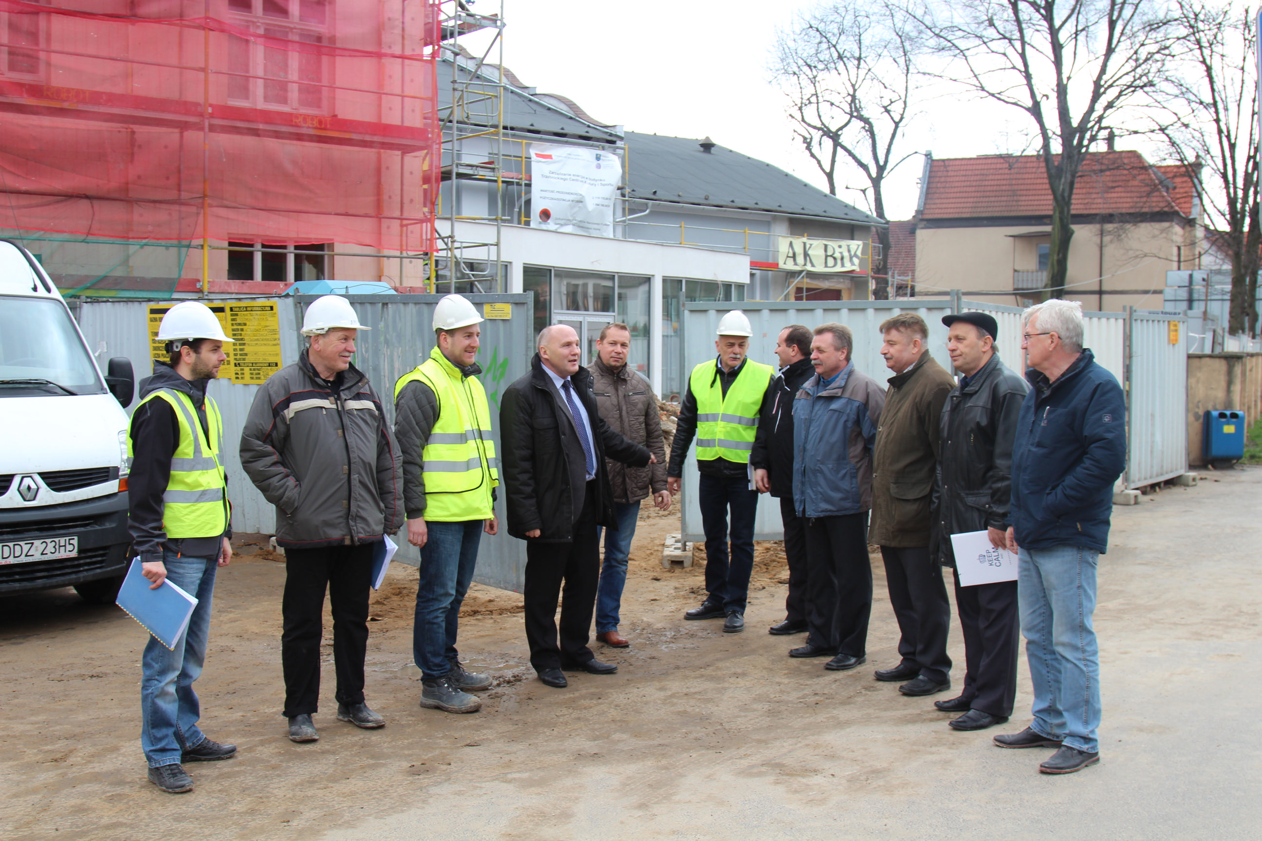 W naradzie roboczej na placu budowy Trzebnickiego Centrum Kultury i Sportu wzięli udział między innymi Burmistrz Marek Długozima, Zbigniew Zarzeczny Naczelnik Wydziału Techniczno-Inwestycyjnego, Ryszard Siwik z Wydziału TI, Jerzy Chomkowicz z Wydziału TI, Paweł Jędrzejewski z Wydziału TI, Maciej Jarosławski Kierownik Budowy z ramienia firmy AK Budownictwo i Konserwacja Sp. z o.o., Andrzej Maj Kierownik Robót AK Budownictwo i Konserwacja Sp. z o.o.