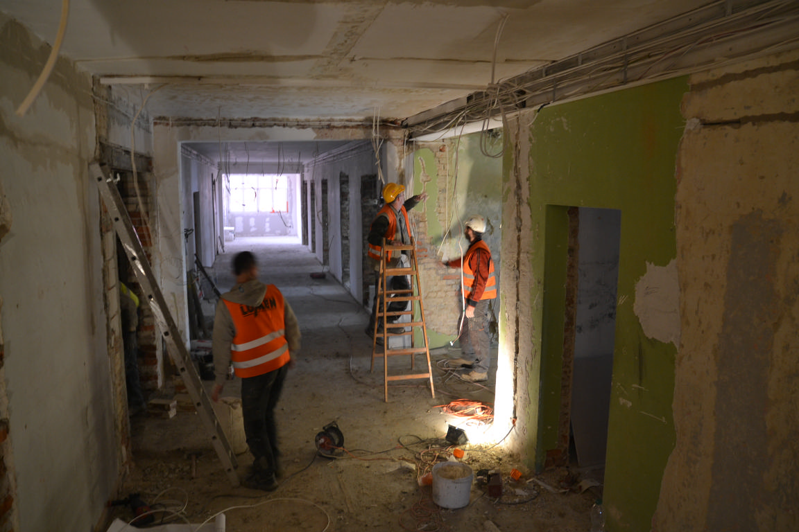 W budynku trwają intensywne prace budowlane.
