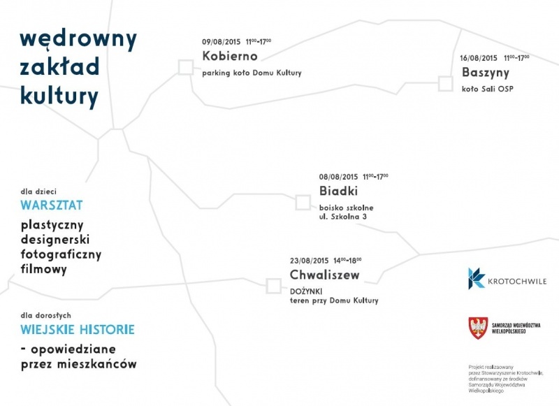Stowarzyszenia Krotochwile - Wędrowny Zakład Kultury informuje o swoim projekcie. W sierpniu autobusem pełnym atrakcji odwiedzi cztery wsie. Odbędą się warsztaty plastyczne, designerskie, fotograficzne, filmowe. Zajęcia będą się odbywały w autobusie, ale także w przestrzeni wsi. Będziemy pytać mieszkańców o historię wsi, ich wspomnienia. Projekt uzyskał dofinansowanie Samorządu Województwa Wielkopolskiego - poinformował portal krotoszyńskiego samorządu.