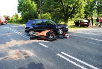 Z dotychczasowych ustaleń wynika, że kierująca samochodem marki VW Golf, w trakcie wykonywania manewru skrętu z drogi głównej w lewo, zderzyła się z jadącym z naprzeciwka motocyklistą. W wyniku zdarzenia kierujący motorem doznał obrażeń ciała i został przewieziony do szpitala. (jkd)