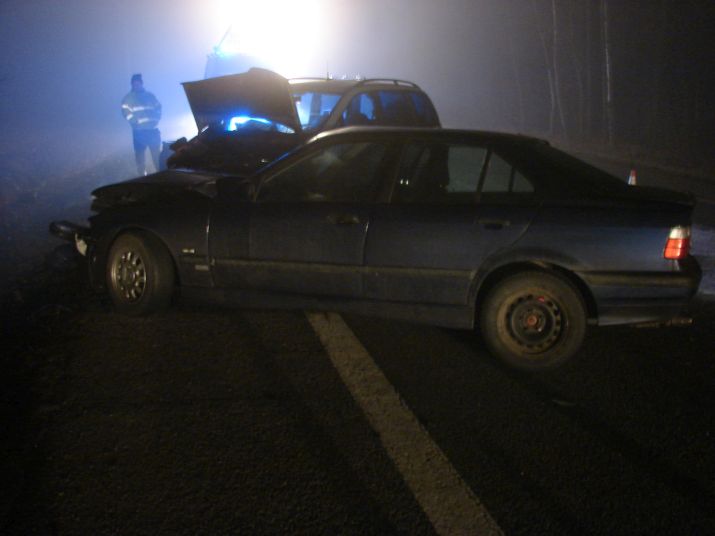 Pomimo skrajnie trudnych warunków atmosferycznych, kierowca bmw zdecydował się na manewr wyprzedzania kolumny pojazdów. Wówczas doszło do czołowego zderzenia z autem nadjeżdżającym z przeciwka. W wyniku zdarzenia obrażenia odniosła pasażerka z sharana oraz kierowca bmw.