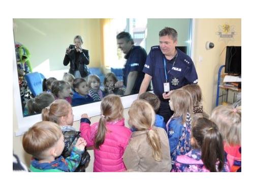 Przedszkolaki z "Modraczka" z wizytą w komendzie