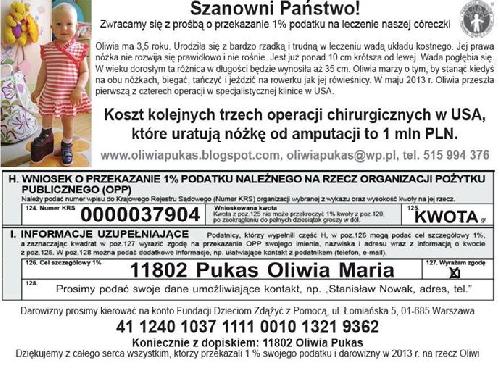 1% podatku, 100% serca i spełnienia marzeń Oliwii...
