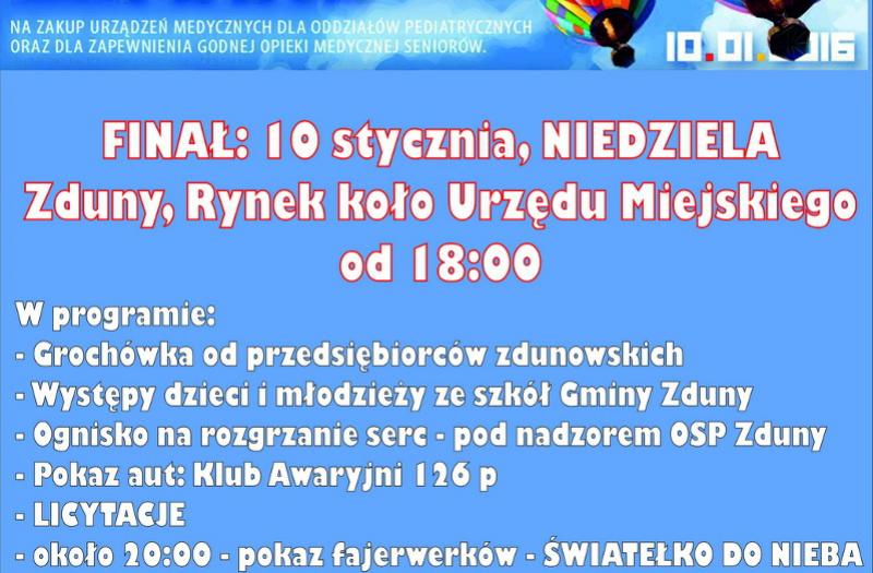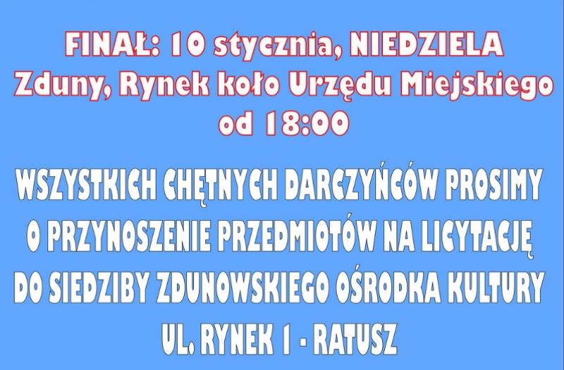 Zapraszamy wszystkich wielkiego serca w niedzielę, 10 stycznia o godz. 18.00 na zdunowski Rynek.