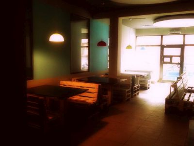 Jakieś rozrzucone palety, kolorowe lampy, wysokie stoły, a w głębi lada bufetu. Wieści niosą, że będzie to lokal, nie byle jaki, bo z grami planszowymi.