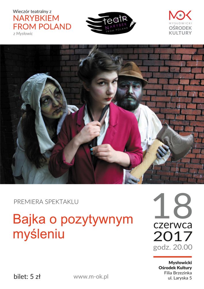 18 czerwca, o godz. 20:00 zapraszamy na kolejny spektakl teatralny w Mysłowickim Ośrodku Kultury na Brzezince. Tym razem będzie to premierowe wykonanie „Bajki o pozytywnym myśleniu” Teatru Narybek From Poland. Wstęp 5 zł.