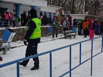 W ramach działań „Bezpieczne ferie 2014” policjanci z Komendy Powiatowej Policji w Żaganiu włączyli się do tej akcji. Na terenie kąpieliska rozdawali światełka odblaskowe i przeprowadzili quiz dla dzieci dotyczący zasad bezpieczeństwa podczas ferii. W formie zabawy dzieci przypomniały sobie o zasadach związanych z bezpieczeństwem na drodze, zabawami na śniegu i lodzie, obroną przed agresywnym psem i unikaniem zagrożeń związanych z osobami obcymi. Za wszystkie prawidłowe odpowiedzi dzieci otrzymały nagrody. (jkd)