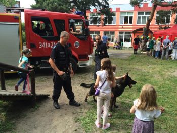 Uczestnicy festynu mieli możliwość zapoznania się z wyposażeniem policjanta na służbie i mogli przymierzyć elementy ubioru funkcjonariusza. Imprezę odwiedzili również mundurowi z psami służbowymi. Maluchy zobaczyły, jak wygląda i jak zachowuje się pies policyjny. Sporą atrakcją dla przedszkolaków był policyjny radiowóz, do którego można było wsiąść i zapoznać się z jego wyposażeniem.