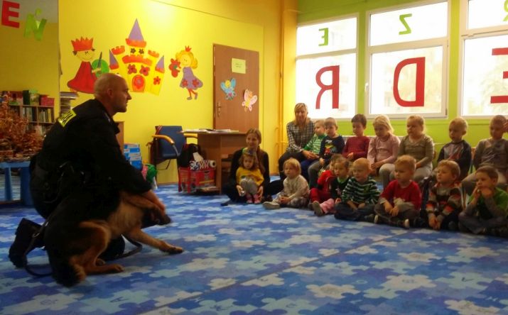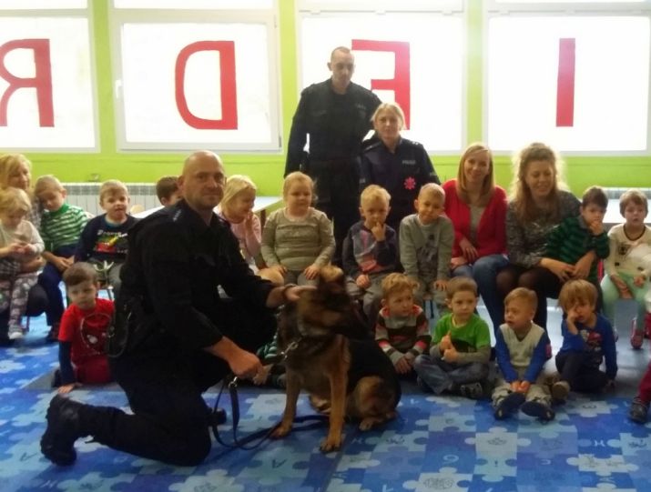 Policjanci z Komendy Miejskiej Policji w Bydgoszczy odwiedzili dzieci w przedszkolu "Biedronka". Mundurowym w wizycie towarzyszył policyjny pies służbowy.