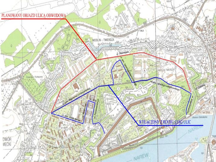Z ruchu zostaną wyłączone następujące ulice: Poniatowskiego, 1831r., Malewicza, gen. Józefa Bema, gen. Wojciecha Chrzanowskiego, gen. Ignacego Prądzyńskiego, gen. Ignacego Ledóchowskiego, Kalenkiewicza.