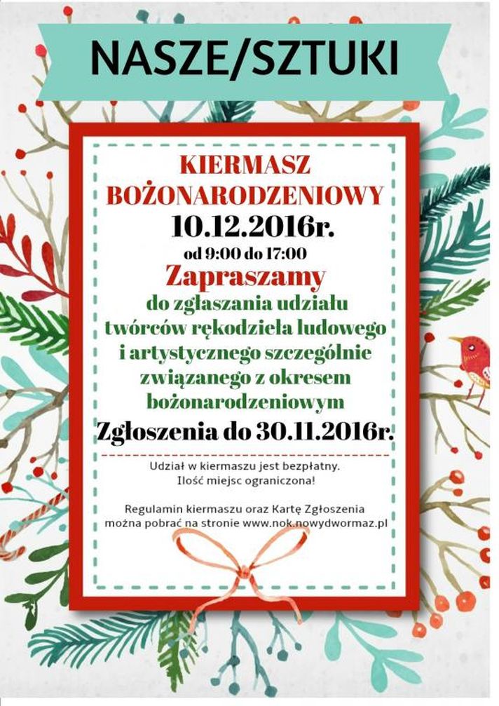 Bożonarodzeniowy kiermasz "Nasze/Sztuki" 2016 - przyjmujemy zgłoszenia