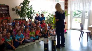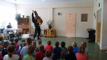 Największe zainteresowaniem wśród najmłodszych budził policjant na "czterech łapach". Asp. Arkadiusz Ludkowski odpowiadał na pytania ciekawskich. Mówił o swojej pracy i psiego policjanta. Wszyscy dowiedzieli się, jaką postawę należy przyjąć podczas kontaktu z obcym psem. Uświadomił dzieciom, jak silny może być pies, a przede wszystkim, jak mocne ma kły. Najodważniejsi chłopcy próbowali w formie zabawy, odebrać policyjnemu psu "Tajowi" jego ulubioną zabawkę.