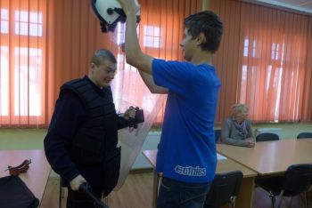 Uczniowie szkół gimnazjalnych z powiatu żarskiego odwiedzili komendę. Z bliska mogli przyjrzeć się pracy policjantów i zobaczyć sprzęt policyjny.