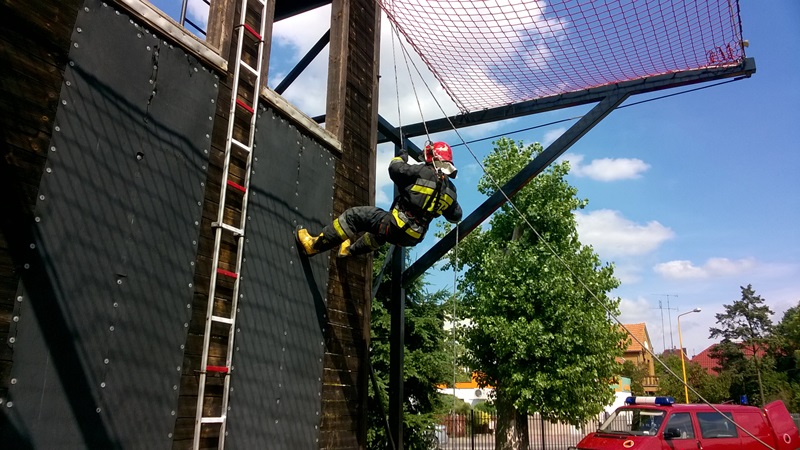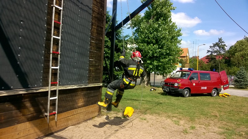podejmowania osób poszkodowanych z studni, kanałów i wykopów z wykorzystaniem sprzętu wysokościowego będącego na wyposażeniu JRG Krotoszyn. Ćwiczenia praktyczne poprzedzone zostały wykładem na temat ratownictwa wysokościowego w Krajowym Systemie Ratowniczo Gaśniczym wygłoszonym przez mł. bryg. Roberta Kurcbacha.