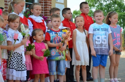 Po chwili scenę wypełnili uczniowie w barwnych strojach ludowych kupionych w ramach projektu. Przedstawili program artystyczny związany z kulturą ludową naszego regionu: tańce, scenki, wiersze. Po nich nas scenie zaprezentowały się dzieci przedszkolne z występem przygotowanym dla mam i ojców.