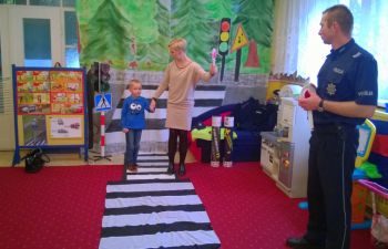 W trosce o bezpieczeństwo małych uczestników spotkania, wręczono im kolorowe odblaski, które dzieci obiecały przywiesić do swoich przedszkolnych plecaków. Pod koniec wizyty w nagrodę za aktywne uczestnictwo w zajęciach, przedszkolaki obejrzały radiowóz.