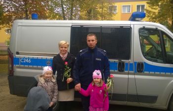Natomiast prowadzącym w podziękowaniu wręczyły kwiaty, gdyż jak powiedziały: „Policjant to też nauczyciel - od bezpieczeństwa, a dzisiaj jest przecież Dzień Nauczyciela”. (jkd)