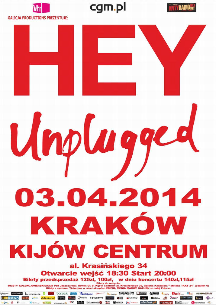W związku z ogromnym zainteresowaniem koncertem grupy HEY Galicja Productions postanowiła zorganizować drugi występ typu Unplugged, planowany na początek kwietnia w krakowskim Kijów.Centrum. Szczegóły poniżej…
