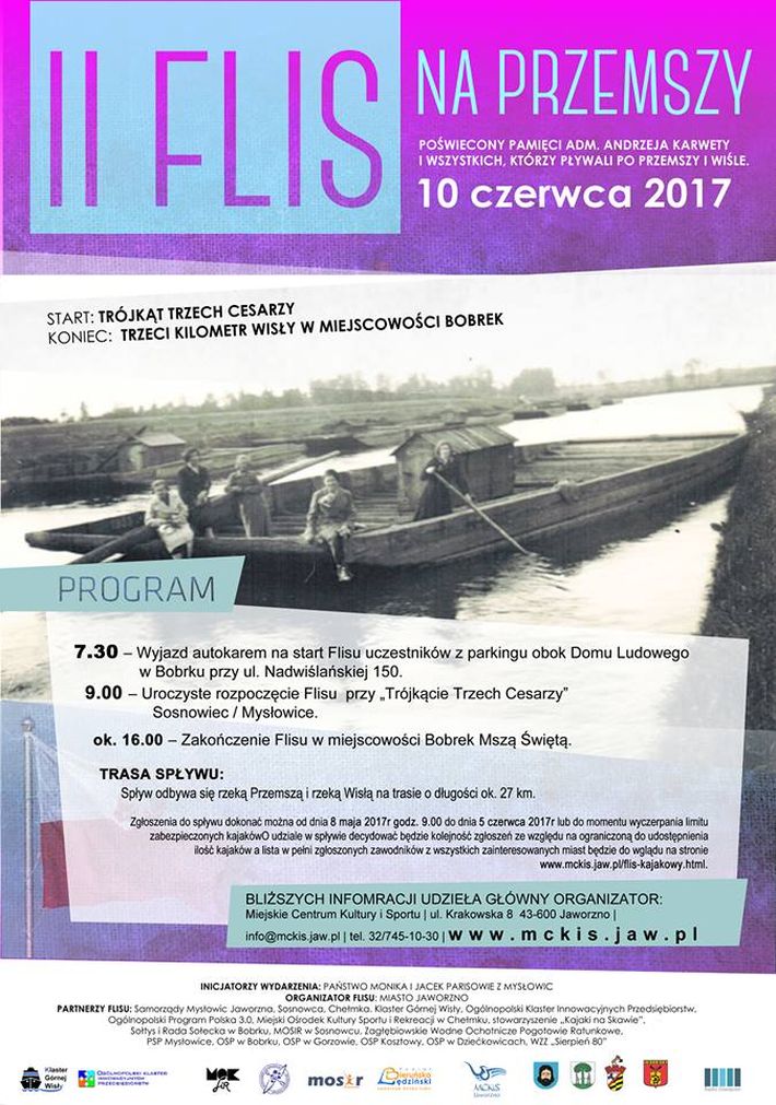 II Spływ Kajakowy „Flis na Przemszy” rozpocznie się 10 czerwca, o godz. 9:00, natomiast zakończy ok. godz. 16:00 mszą świętą upamiętniającą admirała Andrzeja Karwetę. (jkd)