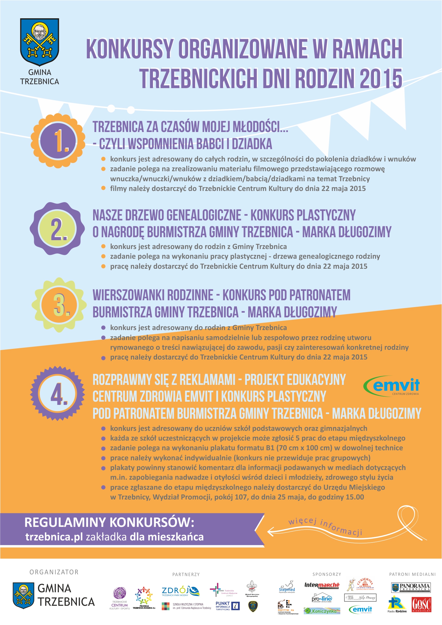 Zachęcamy do zapoznania się z konkursami, które zostały ogłoszone w ramach Trzebnickich Dni Rodzin. Nagrody dla zwycięzców zostaną wręczone podczas Dnia Dziecka, na scenie głównej.