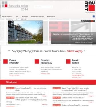 Konkurs Fasada Roku 2014 wystartował 1. września 2014 roku. Architekci, inwestorzy, wykonawcy oraz właściciele i zarządcy nieruchomości mogą zgłaszać do konkursu realizacje, na elewacji których zastosowano kompletną technologię Baumit. Ostateczny termin przyjmowania zgłoszeń mija 31. marca 2015. Zwycięzców wyłoni Jury złożone z architektów, osób zawodowo związanych z branżą budowlaną i architektoniczną oraz przedstawicieli mediów branżowych. Podobnie jak w poprzednich edycjach głosowanie odbędzie się także wśród internautów. Osoby, które odwiedzą portal www.fasadaroku.pl będą mogły oddawać głosy na najlepsze ich zdaniem obiekty. Budynek, który zyska największą ich ilość otrzyma „Wyróżnienie Internautów”.
