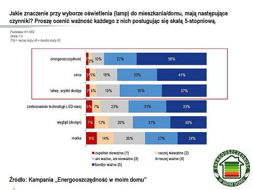 Obowiązek informowania na etykietach o klasie energetycznej danego produktu dotyczy w Polsce sprzętów AGD, telewizorów oraz źródeł świata. Wyniki ogólnopolskiego badania kampanii „Energooszczędność w moim domu” potwierdzają, że informacje te mają dla konsumentów znaczenie. Aż 85% badanych wskazało, że najważniejszą cechą decydującą o zakupie danego źródła światła jest jego energooszczędność. Cena znalazła się na drugim miejscu. „Kupując energooszczędne lampy LED, obok zużycia energii i ceny, warto zwrócić uwagę także na podawaną w lumenach (lm) wartość strumienia świetlnego. Im więcej lumenów, tym więcej światła wytwarza dana lampa. Kolejna ważna informacja to temperatura barwowa światła podawana w Kelwinach (K). Zakres od 2700 K do 3000 K odpowiada barwie ciepłobiałej, najlepszej do odpoczynku, a zakres od 5000 K do 6500 K zimno-białej, odpowiedniej do pracy” – wskazuje dr inż. Andrzej Wiśniewski, doradca techniczny Osram. Godna uwagi jest też trwałość źródła światła. Markowi producenci deklarują poziom użytkowania lampy LED w zakresie nawet do 50 000 godzin.