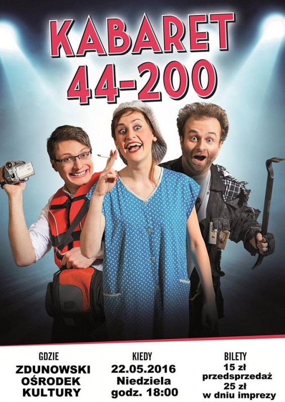 W niedzielę 22 maja w Zdunach (powiat Krotoszyn) wystąpi Kabaret 44-200 - poinformował portal krotoszyńskiego ratusza.