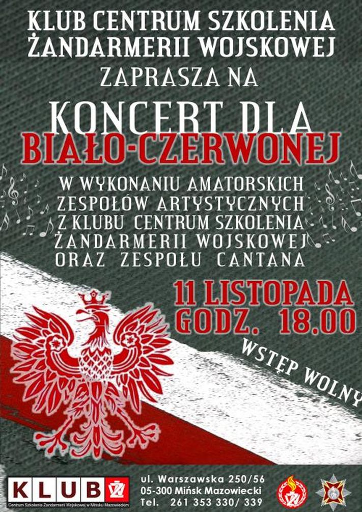 11 listopada, o godz. 18:00 Klub Centrum Szkolenia Żandarmerii Wojskowej zaprasza na koncert. Wstęp wolny.
