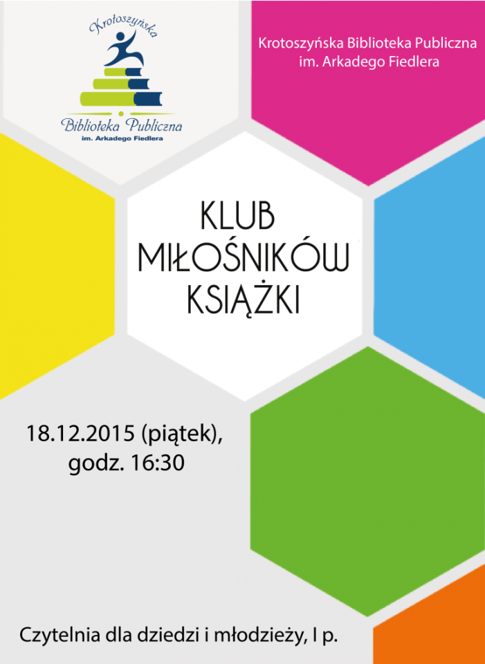 Krotoszyńska Biblioteka Publiczna im. Arkadego Fiedlera zaprasza na spotkanie w Klubie Miłośników Książek 18.12.15(piątek), godz.16.30 (Czytelnia dla Dzieci, I p.).