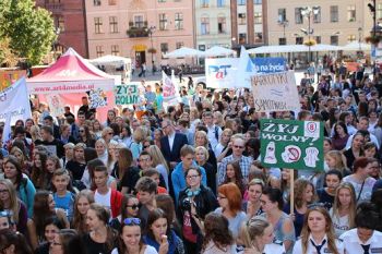 Wszyscy biorący udział w spotkaniu przeszli w Marszu Edukacyjno-Profilaktycznym na Rynek Starego Miasta, promując życie wolne od przemocy i uzależnień. Tam na scenie zespół młodzieży obu szkół NICE, zagrał hymn PaTu. Następnie nastąpiło złożenie deklaracji przez wyłonionego spośród społeczności uczniowskiej Kapitana PatPORTU wraz z kapitanatem oraz podsumowanie spotkania przez insp. Grzegorza Jacha.