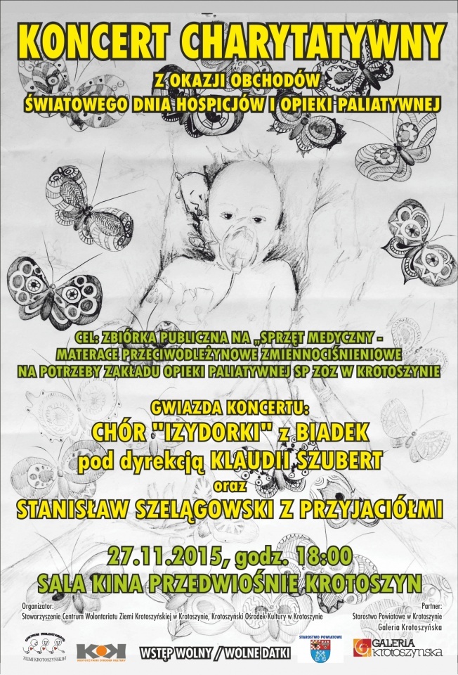 27 listopada 2015 r. o godzinie 18:00 w kinie Przedwiośnie w Krotoszynie odbędzie się koncert charytatywny z okazji obchodów Światowego Dnia Hospicjów i Opieki Paliatywnej - informuje portal krotoszyńskiego magistratu.