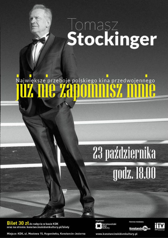 23 października, o godz. 18:00 Konstanciński Dom Kultury zaprasza na wyjątkowy wieczór w klimacie najpiękniejszych szlagierów polskiego kina przedwojennego, w wykonaniu znanego aktora i wokalisty Tomasza Stockingera.