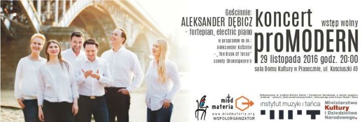 Centrum Kultury w Piasecznie zaprasza 29 listopada, o godz. 20:00 na koncert zespołu proMODERN, z którym gościnnie wystąpi Aleksander Dębicz - fortepian, electric piano.