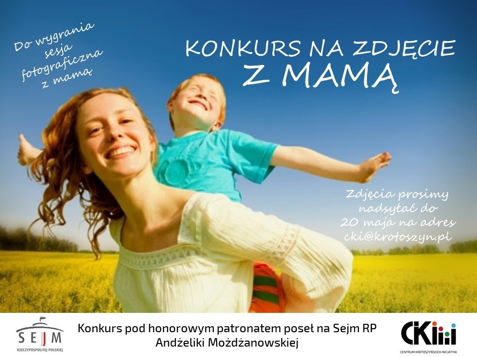Centrum Krotoszyńskich Inicjatyw ogłasza konkurs fotograficzny pn. Zdjęcie z mamą. Tematem konkursu pormuje powinny być naturalne zdjęcia amatorskie przedstawiające dziecko lub dzieci wraz ze swoja mamą niezależnie od wieku - informuje portal UMiG Krotoszyn.