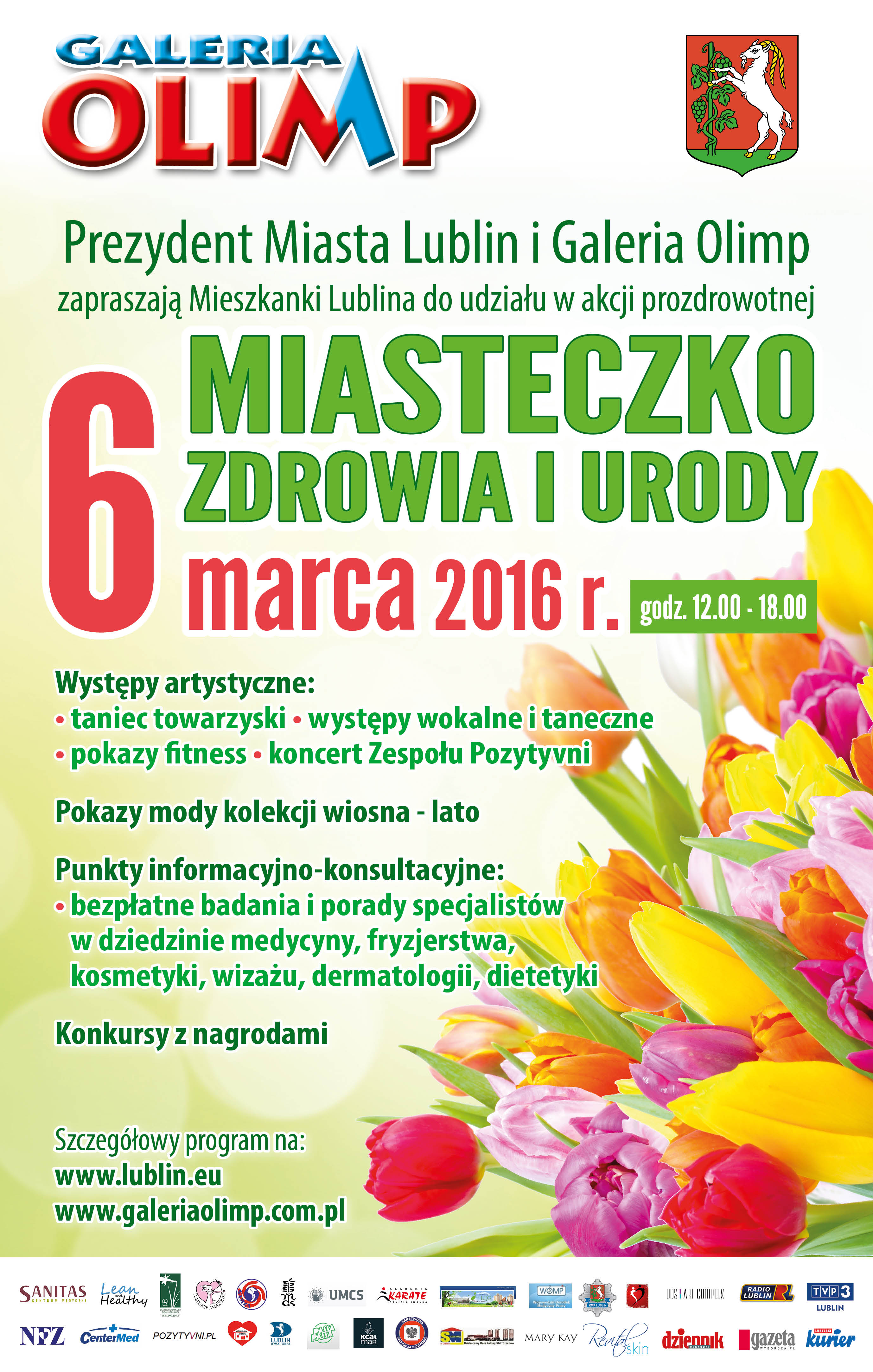 W Dzień Kobiet warto zatroszczyć się o swoje zdrowie w ramach akcji „Miasteczko Zdrowia i Urody”, na którą zapraszamy w niedzielę (6 marca) do Galerii Olimp, w godzinach 12.00-18.00. Spotkanie organizowane jest przez Wydział Zdrowia i Spraw Społecznych wspólnie z Galerią Olimp.