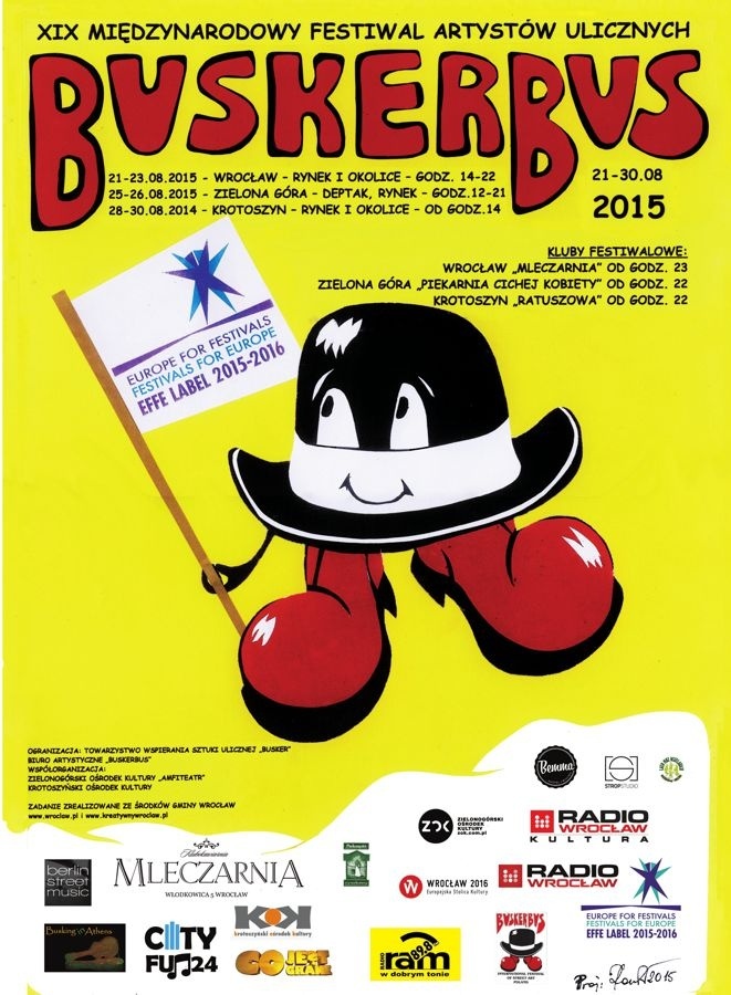 19. edycja Festiwalu BuskerBus odbędzie się w dniach 21-30 sierpnia 2015 w następujących miastach: Wrocław, Zielona Góra i Krotoszyn. Występy odbywać się będą na ulicy w godzinach popołudniowych oraz wieczorem w klubach festiwalowych. Każdy artysta/grupa zaprezentuje swój 30-60 minutowy program dwa razy dziennie. Łącznie wystąpi 50 artystów.Reklama_________________________________________________________________________________________