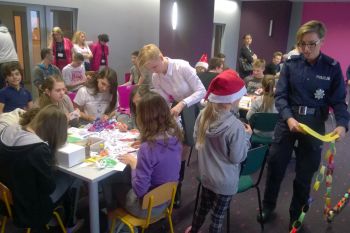 Policjanci ze Śródmieścia odwiedzili dzieci w Wojewódzkim Szpitalu Dziecięcym w Bydgoszczy. Miło spędzony czas upłynął przy wspólnym kolędowaniu i wykonywaniu świątecznych ozdób.