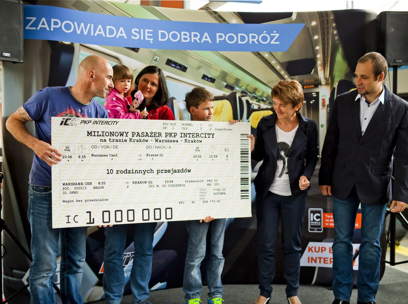 PKP Intercity bije kolejny rekord. Przewoźnik gościł wczoraj (20.06) na pokładzie milionowego pasażera najpopularniejszej relacji Warszawa – Kraków - Warszawa. Wyjątkowy klient podróżował wraz z rodziną Pendolino. W nagrodę wszyscy otrzymali voucher na 10 podróży pociągami PKP Intercity oraz weekendowy pobyt w jednym z krakowskich hoteli objętych projektem „Hotel Przyjazny Rodzinie”.