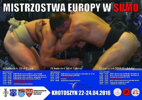 Burmistrz Krotoszyna Franciszek marszałek oraz Dariusz Rozum , prezes polskiego Związku Sumo zapraszaja na Mistrzostwa Europy w Sumo, które odbędą się w dniach od 22 do 24 kwietnia - informuje portal krotoszyńskiego ratusza.