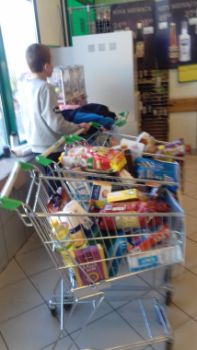 Zebranych zostało kilka koszy artykułów spożywczych, które są produktami zdatnymi do długich okresów przechowywania. W wystawionych w hali sprzedaży wózkach darczyńcy dzielili się z potrzebującymi pomocy przekazując opakowania cukru, mąki, kaszy, makaronu, ryżu, oleje,