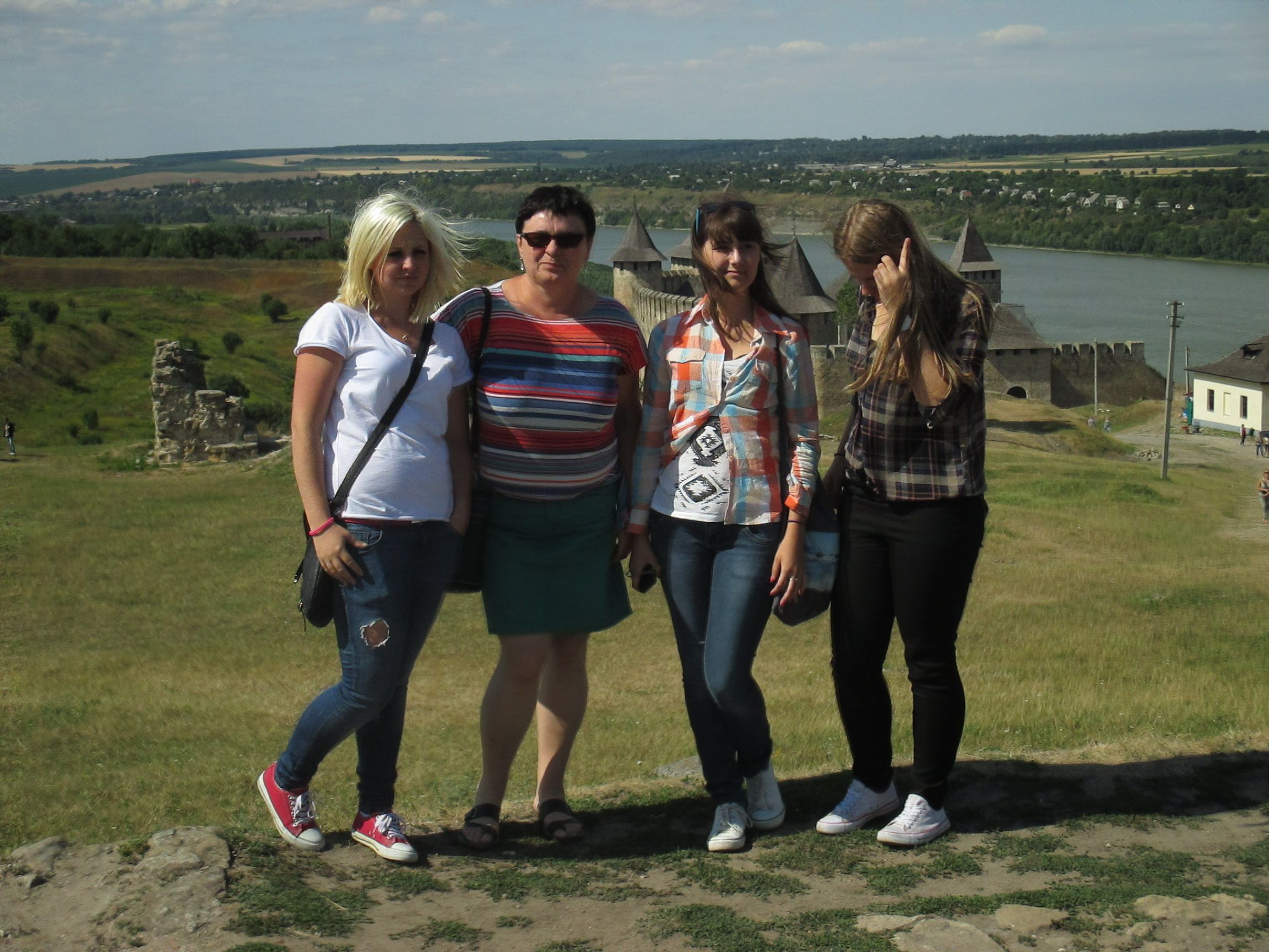 20. Martyna Haftarczyk, Leokadia Kołodyńska - Zysk, Patrycja Karasiak i Agnieszka Zagrodna na tle chocimskiej twierdzy.