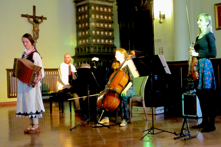Koncert LIM TRIO rozpoczął się niespełna kilka minut po 18.00 w Sali Reprezentacyjnej Sądeckiego Ratusza. Programowa muzyka Ziemi Limanowskiej mieszała się z autorskimi kompozycjami duetu Surreal Players. Złożone z prostej melodyki i obiegających harmonii autorskie utwory „Highlander” i „Drive 28 – Winter” zostały wypełnione potężnym ładunkiem narracyjnym; duet Pluta-Jaworz pozostawia dużo przestrzeni dla słuchacza, pozwalając na mnożenie przeróżnych interpretacji. To właśnie narracja, w kontekście całości czwartkowego występu, stanowiła o jego istocie. Nowoczesność prezentowanej muzyki to przewrotnie ukłon w stronę najznamienitszych tradycji jazzowych, swoisty powrót do korzeni, gdzie ciągłe rozbieganie, pulsująca emocjonalność były tymi składowymi, które nadawały muzyce moc – uduchowiały ją – działały na odbiorców, jak na barbarzyńców pierwsze religie i mity. Nieustanne żonglowanie lodem i ogniem; melancholijne tematy w kojącym „Higlander” i przepięknie budowanym „Drive 28 – Winter” stanowiły dopełnienie folkujących tematów takich utworów jak: „Jedną dolinecką”, „Płynie z Podhala piosnecka” czy Zasiali górale”, wypełniane przez skrzypaczkę wieczoru – Renatę Borucką – pokaźnym ładunkiem wewnętrznej emocji, jak i szerokim wachlarzem pomysłów i rozwiązań formalnych-rytmicznych.