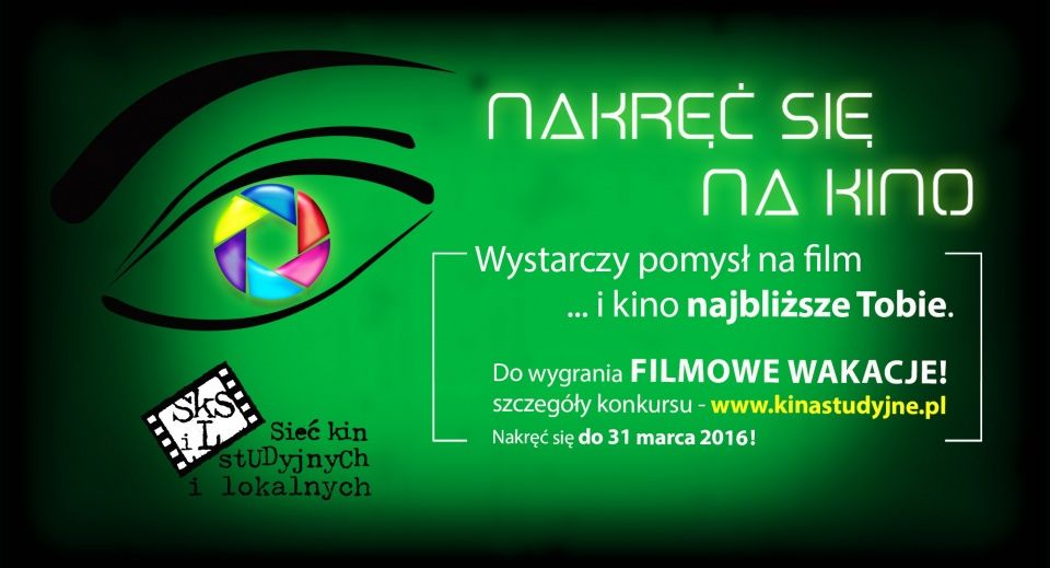 Pokaż nam kino, które jest Ci najbliższe - wystarczy pomysł i Twój własny film by wygrać filmowe wakacje. Zrealizuj krótki film promujący kino najbliższe Tobie. Jeśli okaże się najlepszy, możesz wygrać wakacje na polskich festiwalach filmowych.Reklama____________________________________________________________