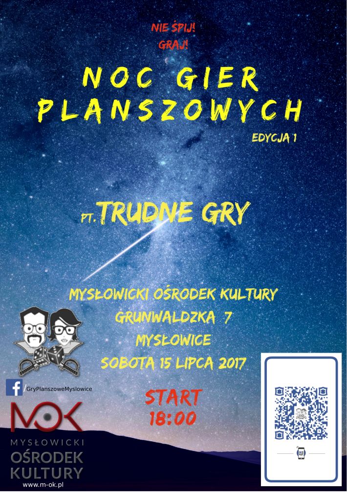 Wraz z grupą mysłowickich miłośników gier planszowych zapraszamy na pierwszą edycję "Nocy gier planszowych", która rozpocznie się 15 lipca, o godz. 18:00.