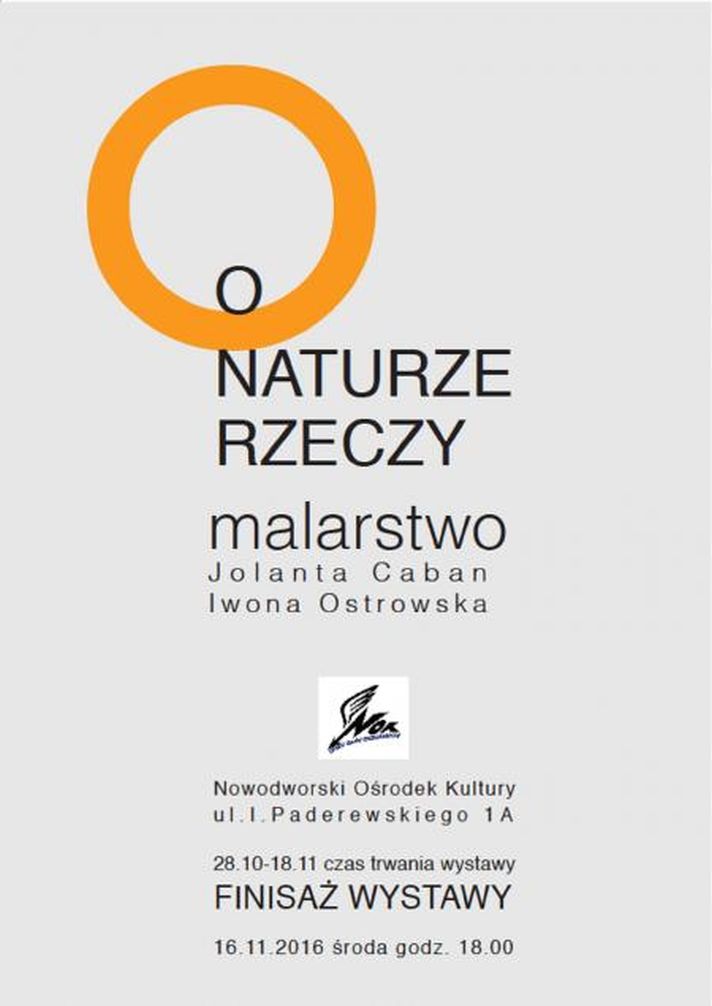 Serdecznie zapraszamy do obejrzenia wystawy pt. „O naturze rzeczy” dwóch znanych, polskich artystek Jolanty Caban i Iwony Ostrowskiej. Obie panie mają duży dorobek artystyczny i znaczne osiągnięcia w dziedzinie malarstwa.