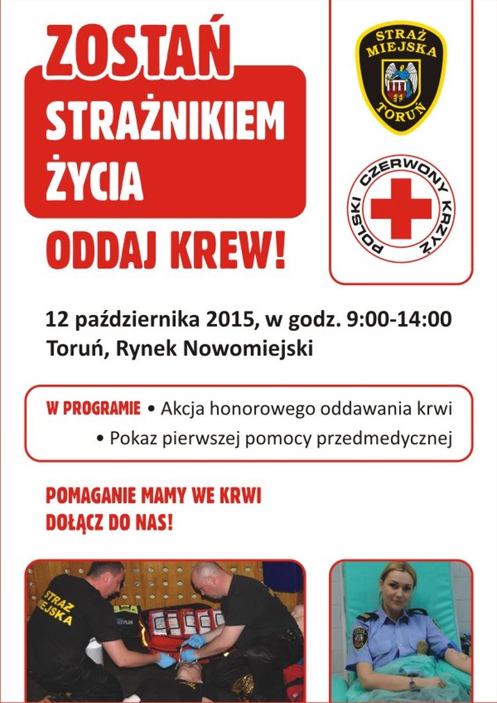 Straż miejska zaprasza pełnoletnich mieszkańców grodu Kopernika do wspólnego oddawania krwi. W najbliższy poniedziałek, tj. 12 października toruńscy strażnicy będą oddawać krew.