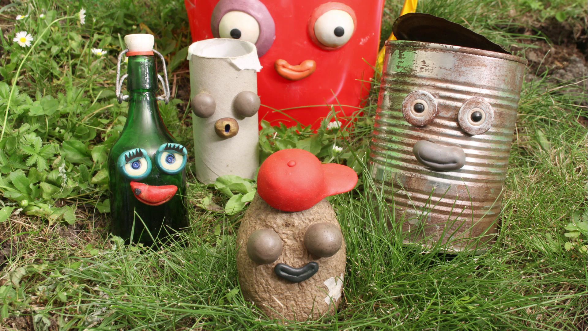 2. Zdjecie z lewej. Nagle Wiadziu podnosi wzrok i go zamurowuje. Wszyscy rozglądają się wokół i opadają im szczęki. Otaczające bohaterów hałdy śmieci pokrywają się trawą, zamieniając się w zielone wzgórza. Gdzieniegdzie wyrastają solidne, zdrowe drzewa. Czarliczak: Ale się porobiło…