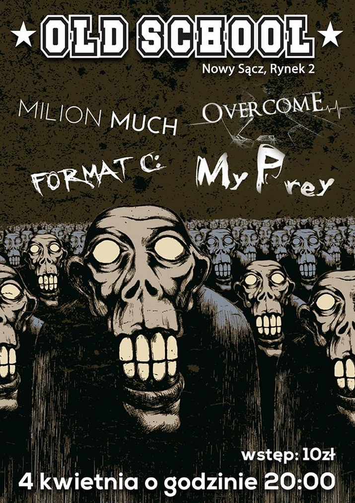 OVERCOME ponownie na scenie! Już 4 kwietnia o godz. 20.00 zespół zmaterializuje się na deskach Pubu Old School w Nowym Sączu. Tego samego wieczoru wystąpią również dwie krakowskie formacje Milion Much i Format C oraz My Prey z Łabowej. Stosunkowo niedawno, bo 9 marca, Overcome udostępnili trzeci premierowy kawałek zatytułowany „Ucieczka”. Można go przesłuchać klikając tutaj.